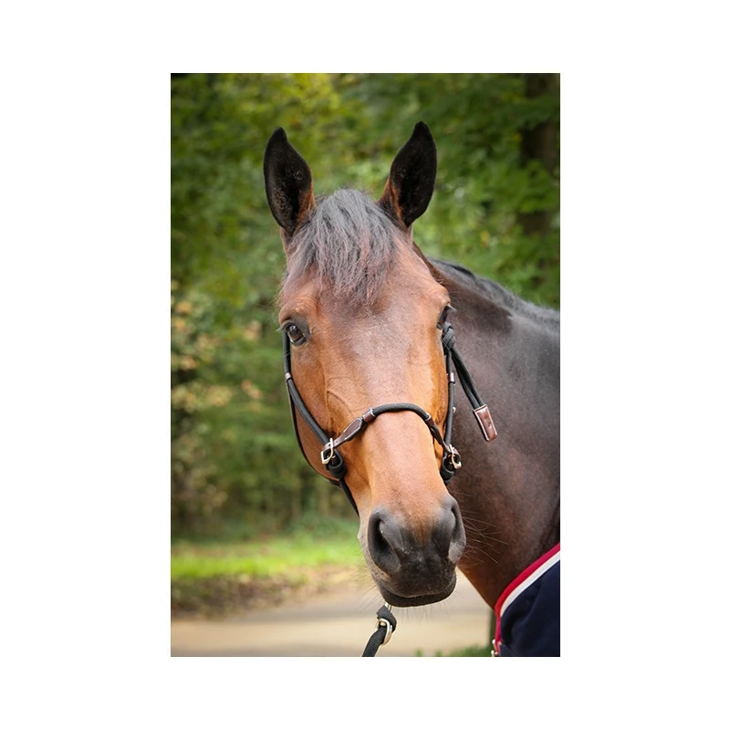 Un licol pensé par Pénélope Leprevost qui permet de travailler autrement son cheval, pour compléter le travail monté dans la décontraction et le stretching. Le licol est fabriqué en nylon-corde & en cuir très résistants. Le réglage de la têtière se fait par un nœud, puis les réglages de la muserolle et la sous-gorge se font pas un système de boucles qui permettent une pose très précise.