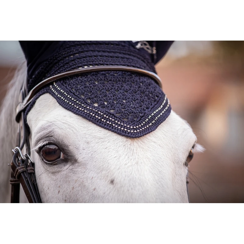 Le bonnet pour chevaux New Strass est un véritable petit bijou à assortir avec le tapis du même nom. Avec sa jolie coupe en V, il se pose harmonieusement sur le chanfrein. Ses oreilles en stretch permettent de s’adapter à de nombreuses tailles. Côté look, un rang de strass est cousu le long du V sur le chanfrein et on retrouve le logo Pénélope également en strass sur l’oreille gauche.