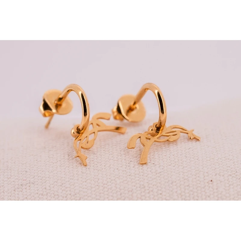 Paire de boucles d’oreilles type créoles. Un petit modèle qui ne va pas passer inaperçu à vos oreilles et qui va apporter une touche équestre à votre look… Le logo Pénélope est suspendu à un petit anneau et l’ensemble se ferme grâce à un bouton poussoir.