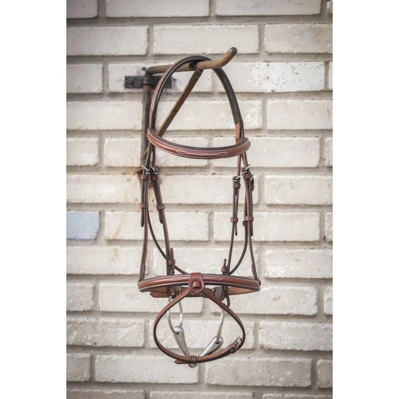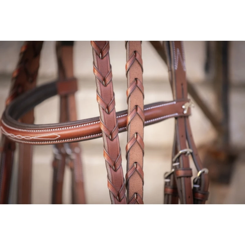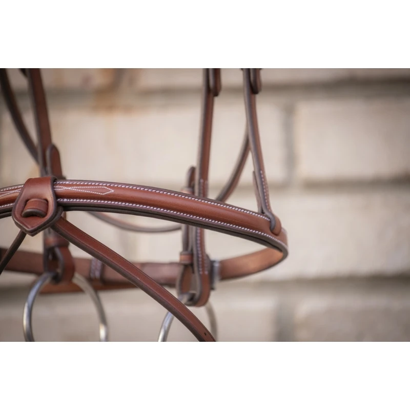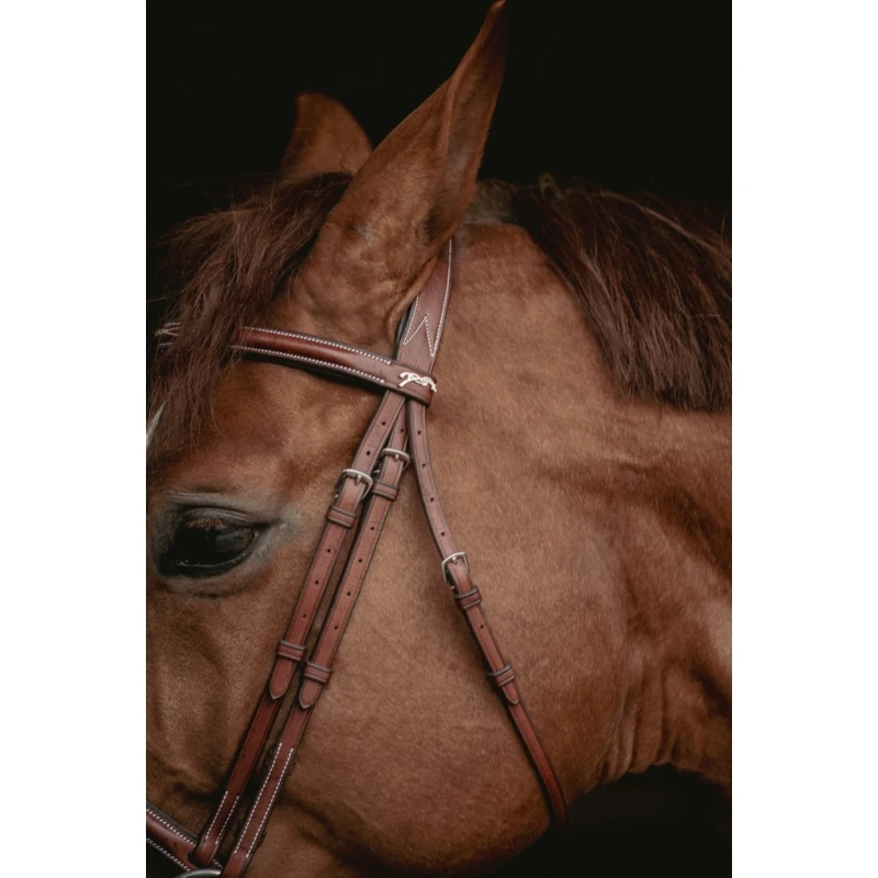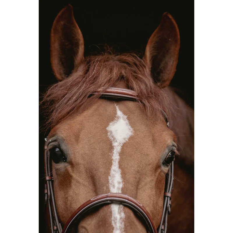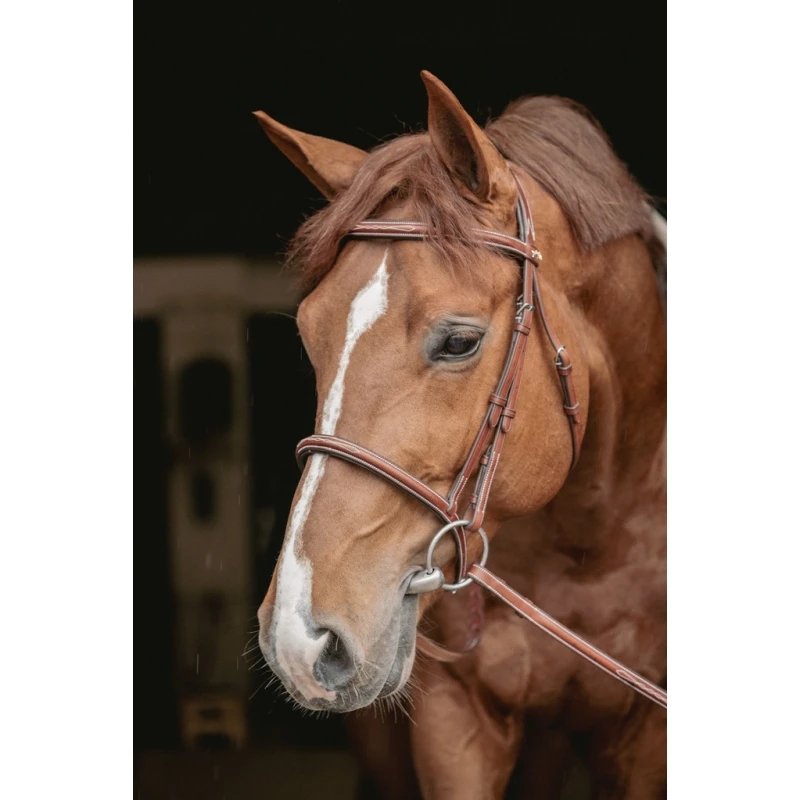 C’est un bridon chic et sobre qui peut être utilisé au quotidien aux écuries comme lors de compétitions équestres.