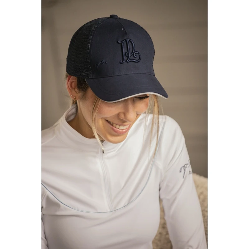 Le devant de la casquette porte les initiales « PL » ainsi qu’un petit logo du cheval Pénélope brodé ton sur ton.
