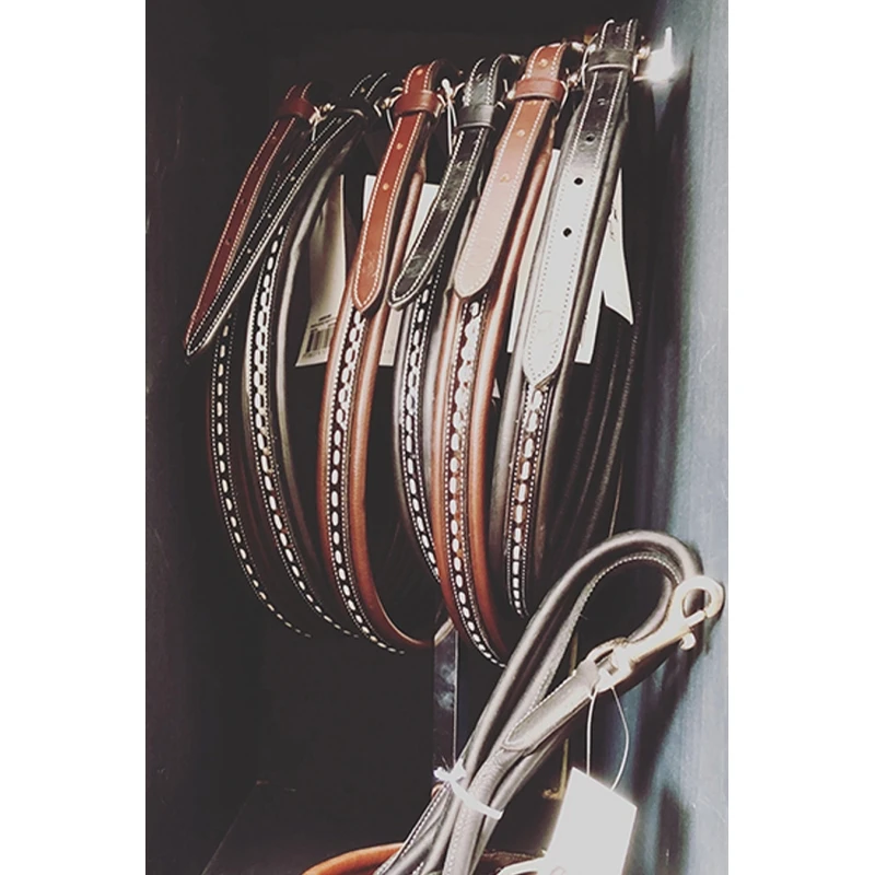 Le collier pour chien Point Sellier des Collections Pénélope est en cuir rehaussé d’un point sellier avec une doublure épaisse. Il possède une boucle de réglage et un anneau pour attacher la laisse. On trouve le logo Pénélope embossé sur le bout de la partie réglable.