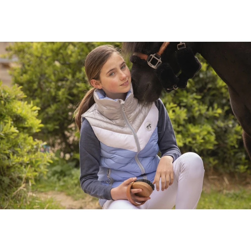 Look color block résolument dans l’air du temps pour cette doudoune sans manches. Elle vous accompagnera dans vos aventures équestres et/ou citadines les plus folles ! Disponible en silver-blanc-artic ou en marine-blanc-rose, elle va s’assortir à de nombreux looks mais aussi apporter une fine couche de chaleur. Cette doudoune est idéale pour l’inter-saison ou en épaisseur supplémentaire sous un blouson pour les journées plus froides.