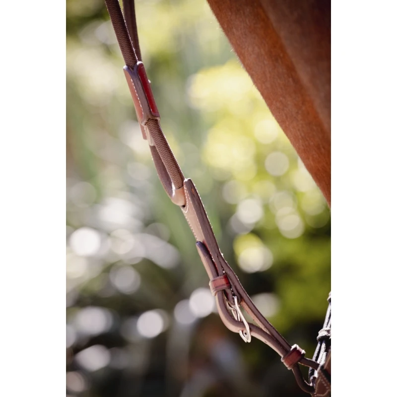 La flèche de Martingale Bip Light US Élastique des Collections Pénélope est idéale pour canaliser certains chevaux. Elle permet de les garder dans un couloir de rênes et/ou de limiter les ports de tête trop hauts. Elle s’adapte facilement à tout type de collier de chasse et plus particulièrement à notre Martin-collier. Elle est composée de deux liens en élastiques ronds reliés par un lien en cuir coulissant qui assure la stabilité de l’ensemble de la martingale. Très souple et douce à l’utilisation grâce à ses liens élastiques, elle assure un confort dans le contact avec le cheval. Elle s’attache facilement à un collier de chasse ou à notre Martin-collier grâce à une boucle réglable.