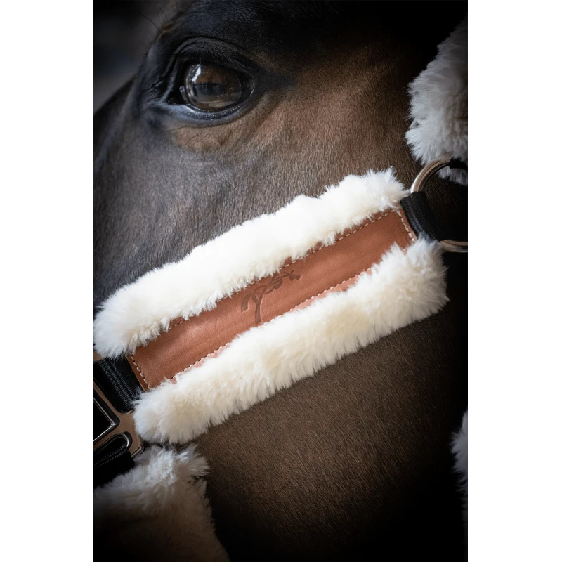 Un licol qui pense confort et esthétisme pour votre cheval. Le cuir sur la muserolle et sur les deux montants de chaque côté est entouré d’un véritable faux-mouton. Le reste du licol est en nylon, également recouvert par du mouton synthétique. Il est très souple et agréable à manipuler. Il est idéal pour faire voyager votre cheval à l’attache avec un maximum de confort ou pour des séances de pansage au top de la douceur !