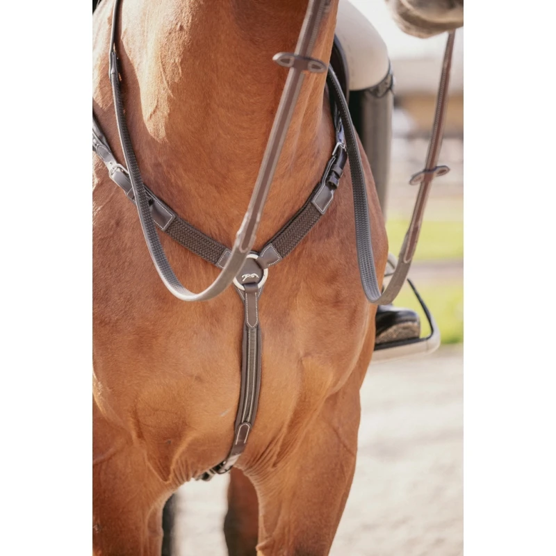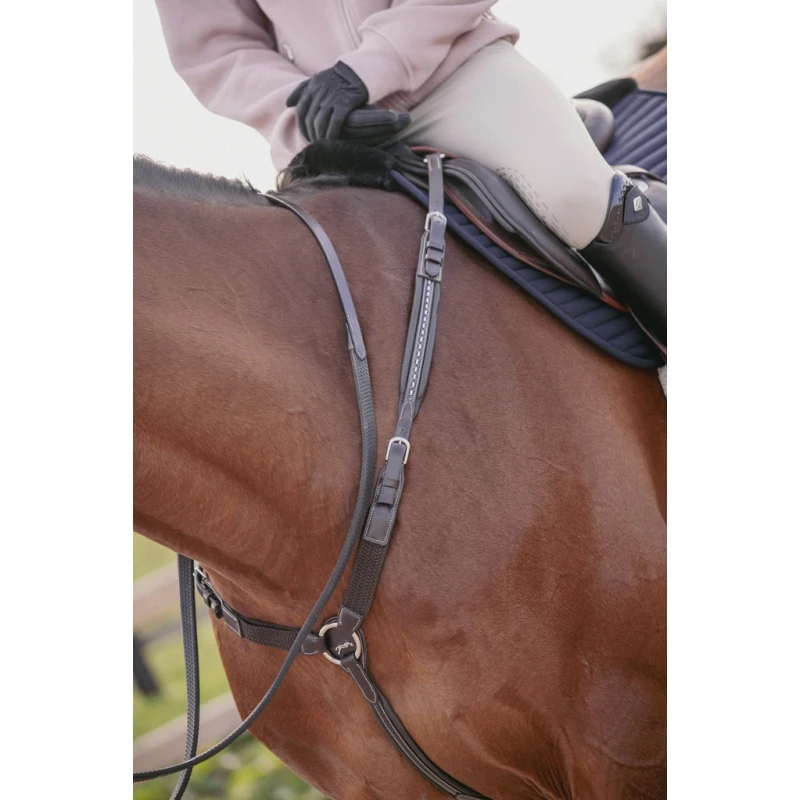 Le réglage de la partie martingale se fait par 2 boucles de chaque côté de l’encolure. L’utilisation en collier de chasse propose 2 options pour un réglage optimal : une option de réglage de chaque côté de l’encolure et une autre de chaque côté du garrot.
