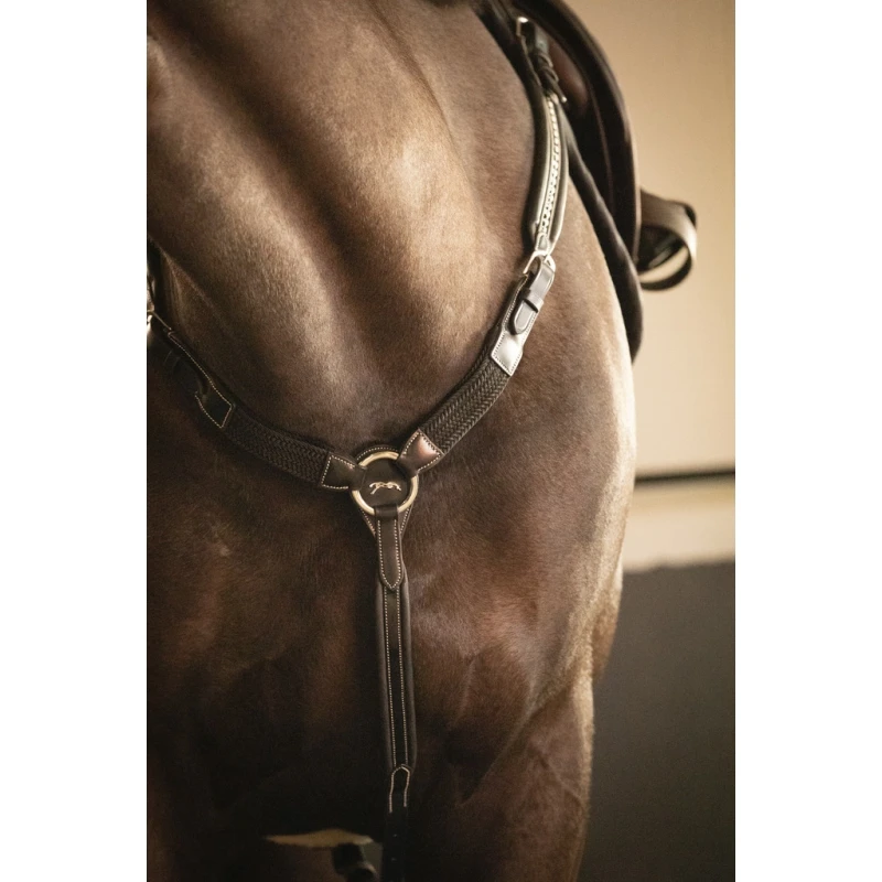 Le réglage de la partie martingale se fait par 2 boucles de chaque côté de l’encolure. L’utilisation en collier de chasse propose 2 options pour un réglage optimal : une option de réglage de chaque côté de l’encolure et une autre de chaque côté du garrot.