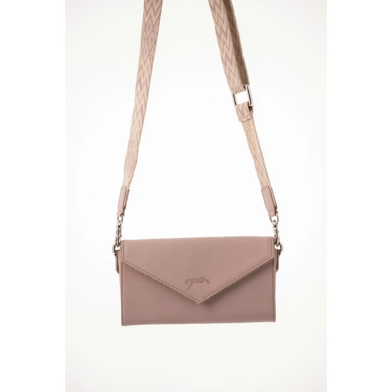 Pochette pour téléphone en cuir à accrocher sur la ceinture ou à porter en bandoulière. Ultra pratique pour emporter son téléphone portable partout avec soi, elle s’accroche à la ceinture grâce à un système de pattes avec des pressions ou se porte en bandoulière grâce à une jolie lanière large et plate aux motifs chevrons. Elle se ferme à l’avant, grâce à un bouton pression placé sous un rabat en V embossé du logo Pénélope. Sur ce rabat, un passepoil pailleté assorti vient rehausser sa forme en V.