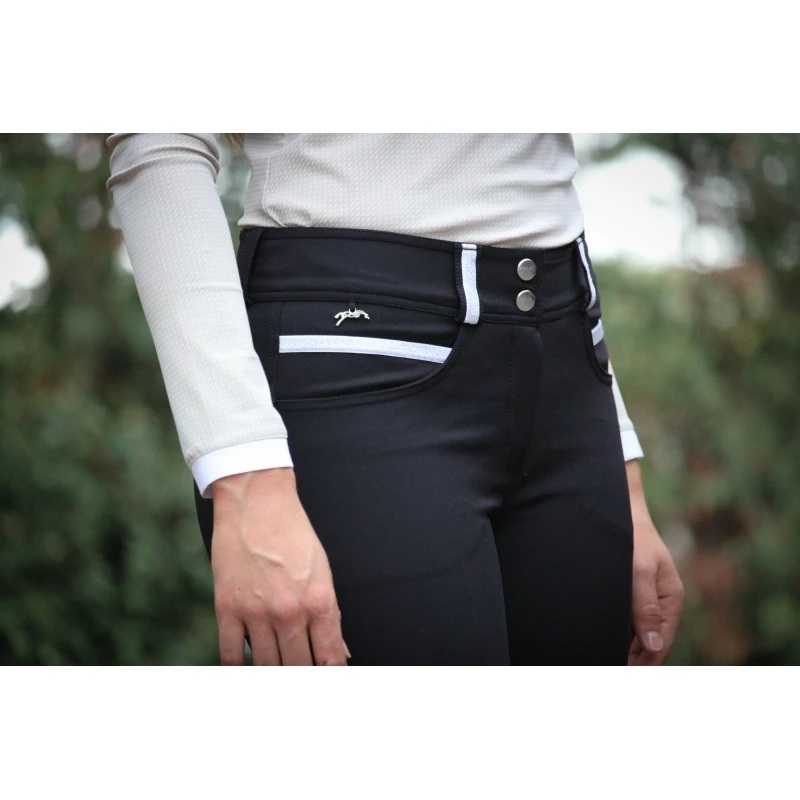 Dans la famille des pantalons d’équitation Fun des Collections Pénélope, il ne manquait que ce basic incontournable… le noir. C’est pour mieux répondre à la grande demande de nos clientes chéries que nous avons décidé de l’ajouter au catalogue de la saison 2020-2021. Si la couleur est toute nouvelle, la coupe du pantalon d’équitation Fun, elle, ne change pas… Toujours cette taille mi-haute et légèrement plongeante, toujours ce joli galon argenté légèrement brillant qui dessine les poches et toujours ce bas de jambe en lycra ultra-confortable et qui s’adapte à toutes les morphologies. bref, un condensé de chic et de confort pour monter à cheval !
