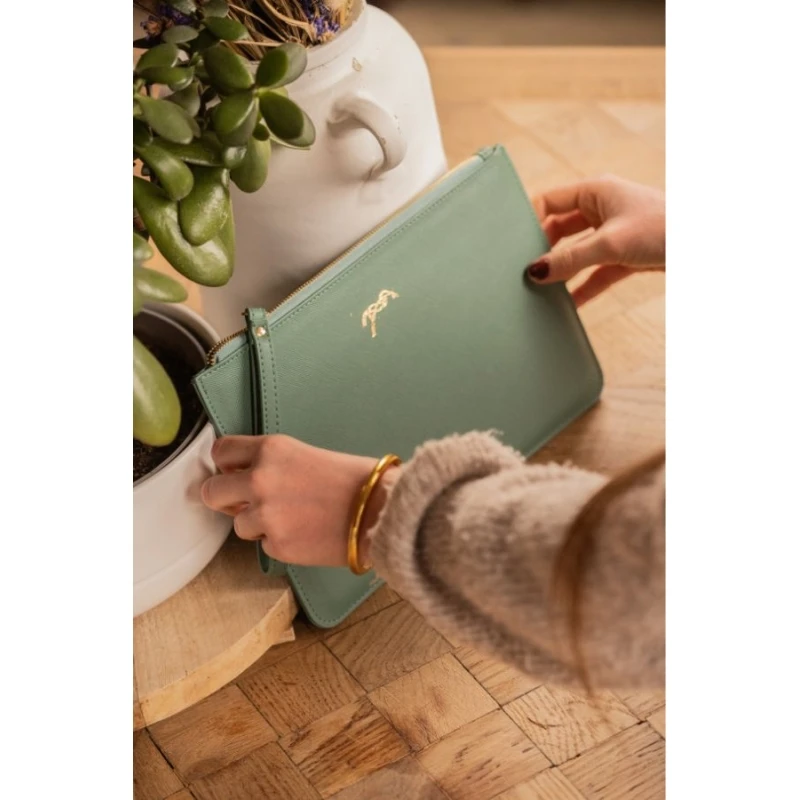Jolie pochette plate qui se glisse, au gré de vos envies, dans un sac à main ou sac de voyage. Elle peut recevoir de nombreux petits indispensables : maquillage, papiers d’identité ou tout ce qu’il vous plaira de garder à l’abri. Elle mesure 17 cm de large sur 26 cm de long et le logo Pénélope est marqué en doré sur la face externe. Elle se ferme par un joli zip doré.