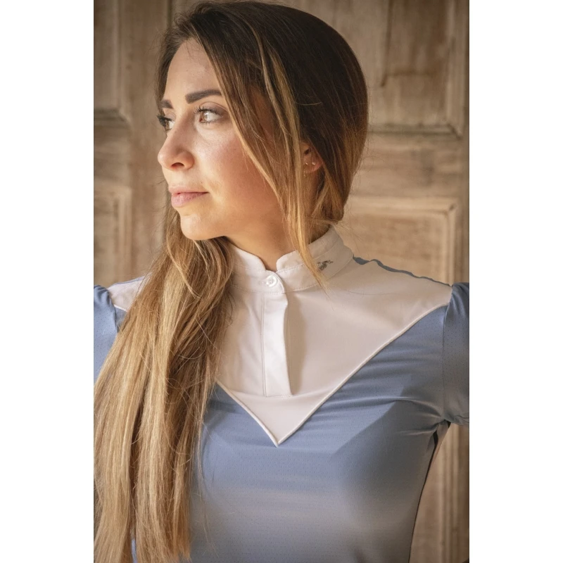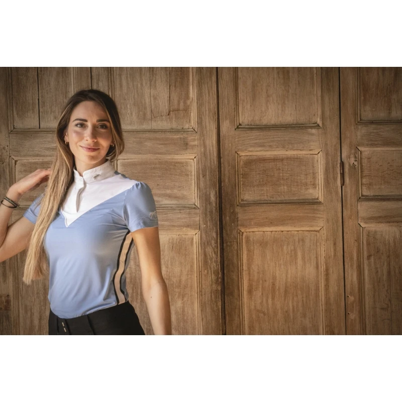 Polo de concours « Moon » bleu artic et blanc à manches courtes. Aussi sporty que girly, le porter est un vrai bonheur !