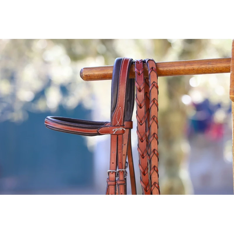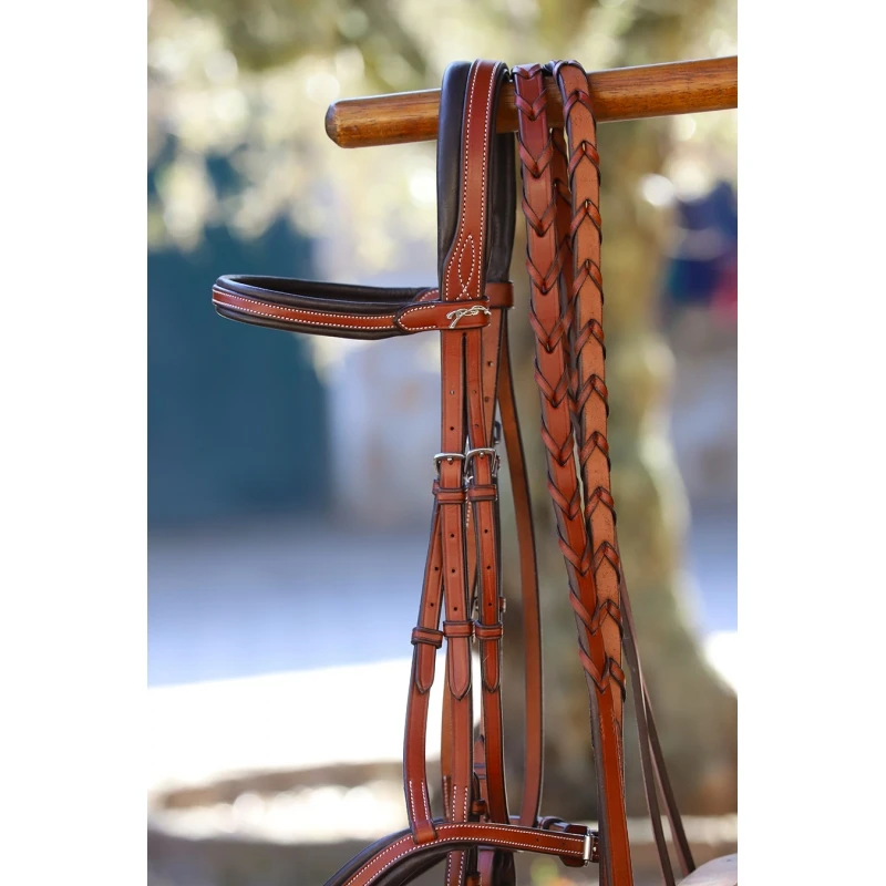Conseil d’entretien : Une première étape de nettoyage avec un savon glycériné en spray ou en bloc, puis une deuxième étape avec une graisse pour cuir haut de gamme, vous permettront de maintenir votre paire de rênes tressées US dans un état optimal.