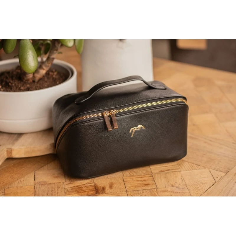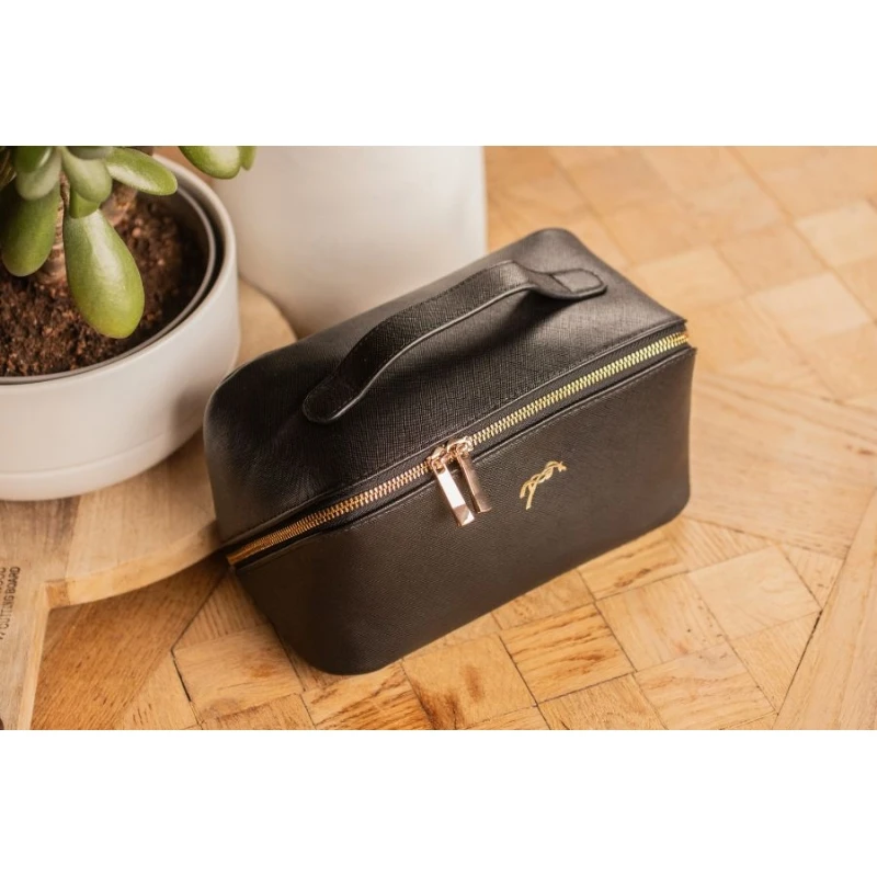 Jolie trousse de toilette pour emporter tous vos essentiels de beauté en voyage. Elle peut recevoir de nombreux petits indispensables : maquillage, crèmes, soins et autres accessoires. Elle mesure 25 cm de long sur 12 cm de large et 14 cm de haut. Elle se ferme par un zip qui permet de l’ouvrir en grand, pour tout retrouver avec la plus grande facilité. Une petite pochette intérieure zippée complète les capacités de rangement. Le logo Pénélope est marqué en doré sur la face externe.
