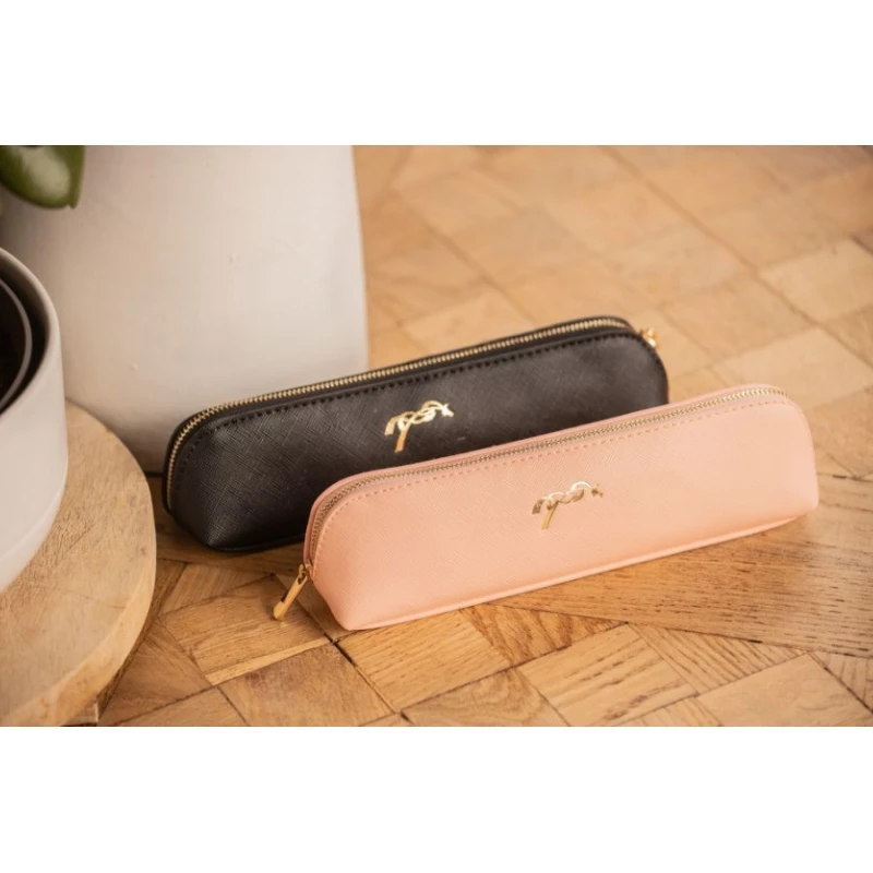 La trousse des Collections Pénélope dans son coloris noir est parfaite pour emporter partout avec soi quelques stylos et crayons. Elle se glisse avec élégance dans votre sac à main. Elle peut également recevoir quelques produits de soin ou de maquillage, au format miniature. Côté look, on y retrouve le logo Pénélope, marqué en doré. Cette trousse pourra vous accompagner au bureau comme sur les bancs de l’école !