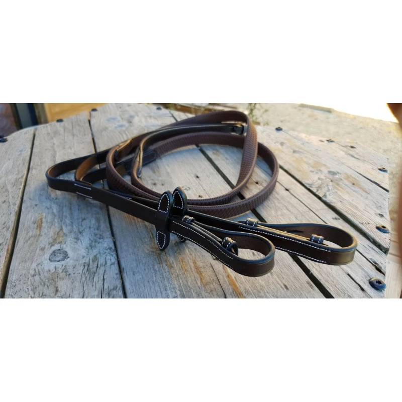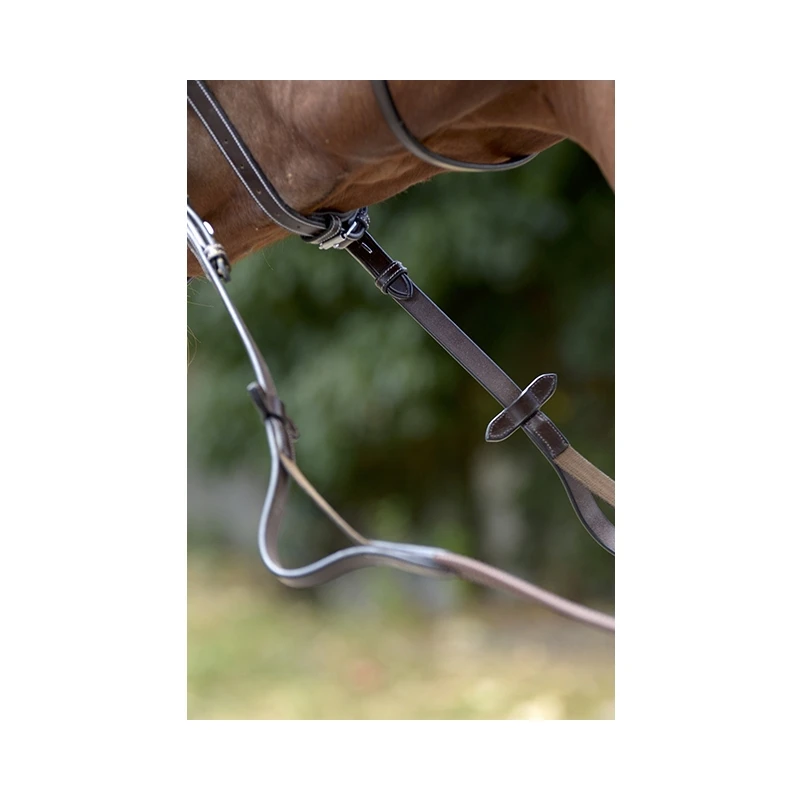 Ces rênes pensées par Pénélope Leprévost sont conçues pour conserver un contact constant avec la bouche du cheval. Idéales pour les chevaux ayant tendance à lâcher le mors, à refuser le contact avec la main du cavalier. Particulièrement adaptées pour les jeunes chevaux, pour leur apprendre à se tendre de façon continue et juste sur leur mors.